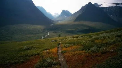 Bilden visar vyn efter man passerat Mårmapasset sydöst om Abisko. Vi är på väg mot Stuor Reaiddavaggi och Nallo. Augusti 2002.