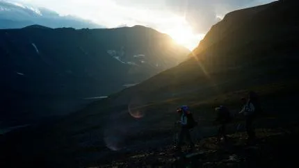 På väg ner från Mårmapasset mot Vassajavri. Vi var oerhört trötta. Inte så mycket pga uppgången till passet, men väl ner på denna sida. Block, halt. Livsfarligt.