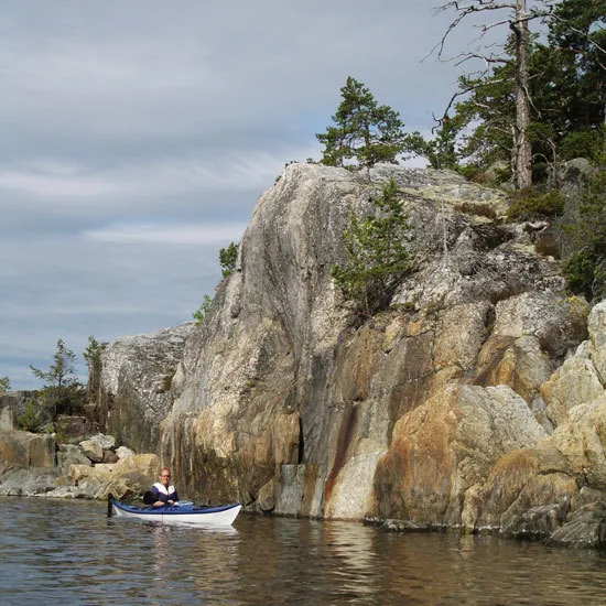 Jag paddlar i Höga Kusten strax sydöst om Höga Kusten-bron.