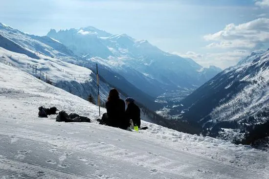 Jag och Simone lunchar i backen.