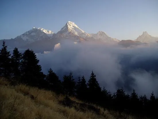 En sagolik morgon på Poon hill i Nepal. Kallt men sagolikt vackert med utsikt över Annapurna.