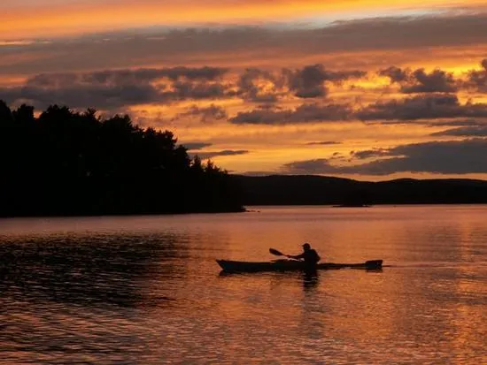 Paddlare i solnedgången vid St Björnö Runn