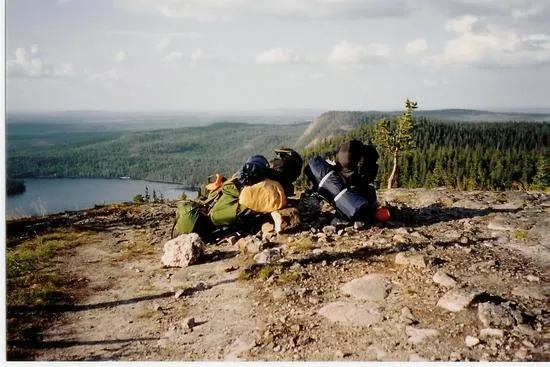 Om man går Karhunkierrosleden från norr så är de sista 1,5 milen (av 8 mil totalt) en sträcka att bita i. Kvällssolen och utsikten från Konttainen, Valtavaara och de andra topparna som ligger på rad gör det värt besväret.