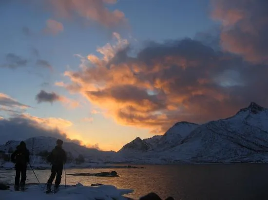 Anmarsch till Rundfjellet förbi vattnet Vestpolltjörna med Kvittinden i bakgrunden.