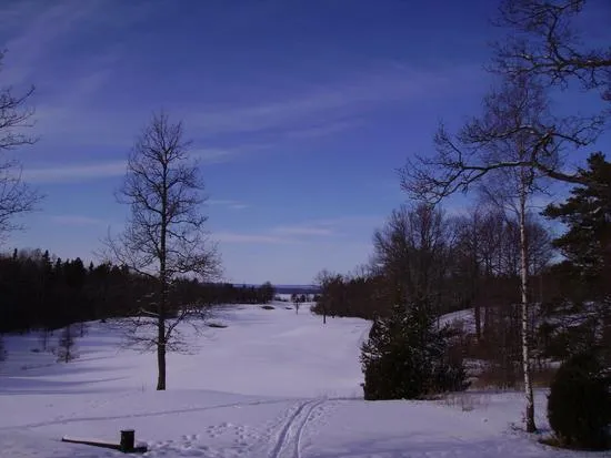 Det är ju så tokigt vackert med snö och blå himmel. Det här kortet tog jag på en långpromenad i början av april utanför Gränna.