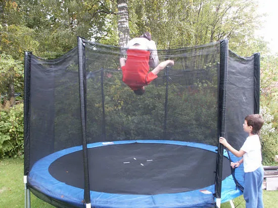 Har medlidande. Drog av ett korsband vid första besök på en liknande trampolin..