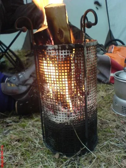 När vi var på väg så uppstod ett problem, vi hade glömt att införskaffa eldstad. Firmans marschallhållare fick stryka på foten, uppochnervänd funkade den ypperligt för ändamålet.