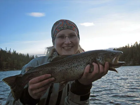 Drog upp denna öring på fjärde kasten med mitt nya spö.