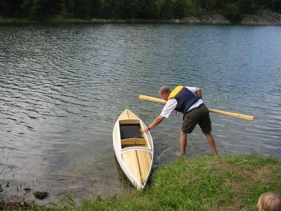 Liten stripbyggd däckad solokanot. Tyvärr lite tung och klumpigt byggd, men kul och fungerar bra för fiske.