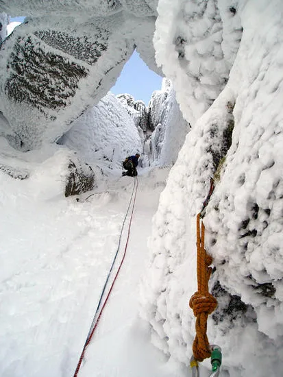 Jag leder den sista repan som vi klättrade innan vi vände ca 100 højd meter från toppen. Bjørn Kirkhaug tog bilden