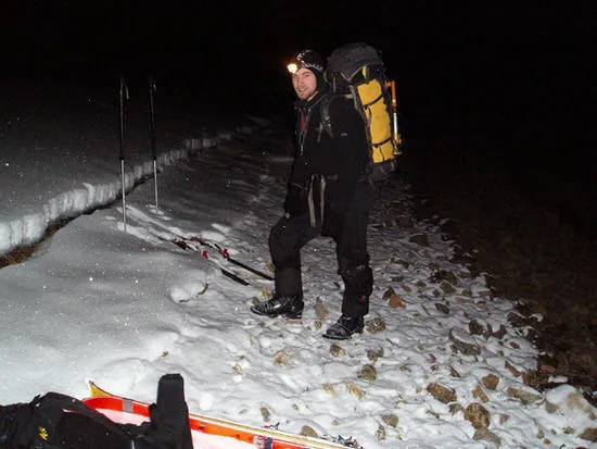 Førsøk nr 2 på førsta vinter bestigning av vestra rulten. Bjørn Kirkhaug och jag starta tidigt efter en liten båt tur øver fjorden først. Vi vände ca 100 højd meter från toppen. Bjørn Kirkhaug tog bilden