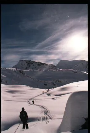 Började med helilyft från Alagna/Italien och därefter offpist ned i lössnön. Här är en vacker transportsträcka.