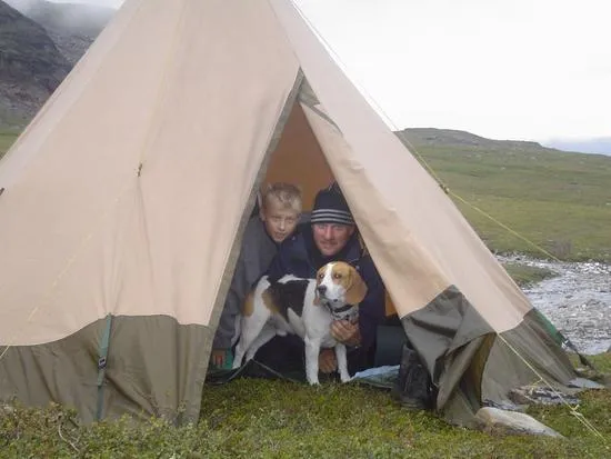 Vandring till Trollsjön. Med på bilden är jag, Elias och vår beagle Ådi