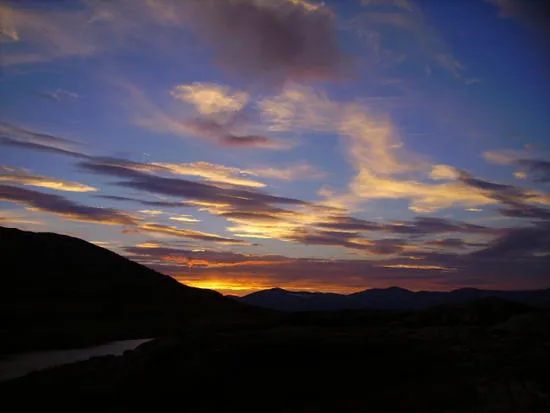 Så här fin var himlen första kvällen på min senaste vandring i Jämtlandsfjällen. Kul att någon mer än jag gillar mina bilder...Just den här kvällen var lägerplatsen vid en liten sjö utan namn, nära vinterleden, under Smällhögarnas nordligaste utlöpare