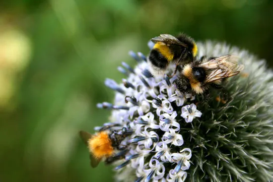 Var ute och gick när jag stöte på ett helt gäng humlor som kalasade på denna boll, någon form av tistel eller något.