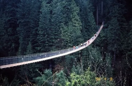 Capilano Supension Bridge utgör en av Vancouver stora sevärdheter. Den är nästan 140 meter lång och går ca 70 meter över ravinens botten