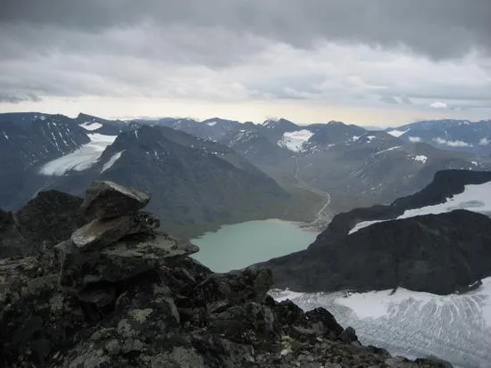 På toppen av Vuojnestjåkkå med utsikt ner mot Pierikjaure.