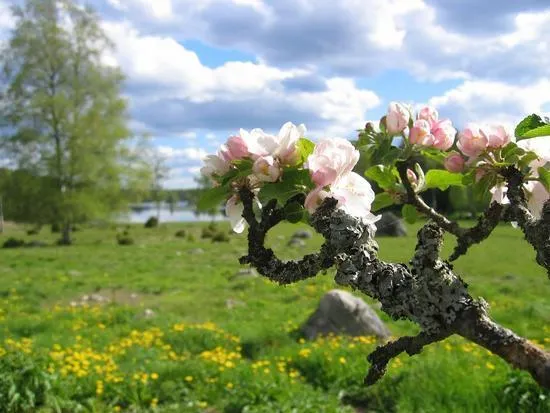 Härlig livskraft i gamla äppelträd, ger sig inte i första taget. Ser ut som om det skulle kunna vara taget vid Kungsgården på Adelsö i Mälaren... är det det?