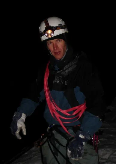 Isklättring på Hunneberg, klätterpolaren Jörgen bringar ljus i mörkret