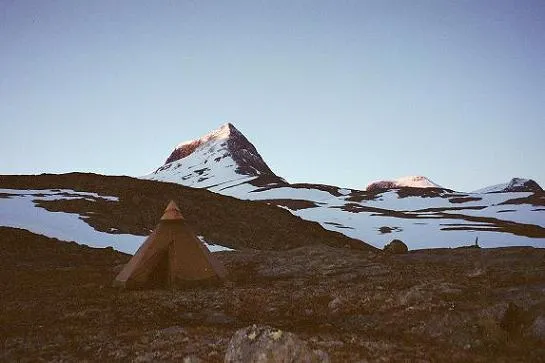 Kul jämförelse mellan bergstoppen och tältkåtans form