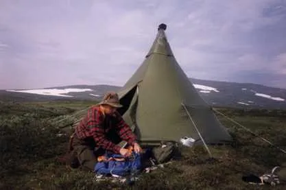 Skönt att efter 2 mils vandring få slå upp kåtan, och göra sig hemma stadd.