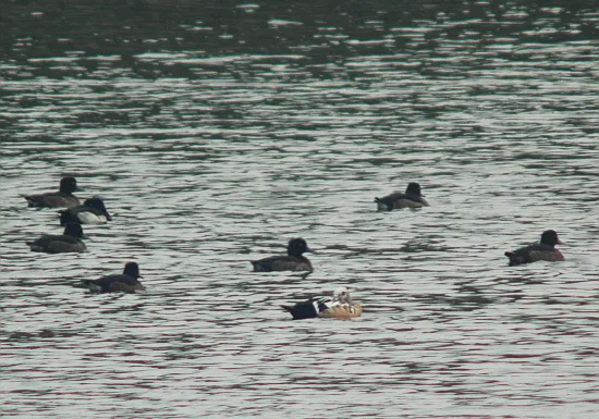 Nästan fullt utfärgad Alförrädare som slagit sig ner i en damm tillsammans med ett gäng Viggar