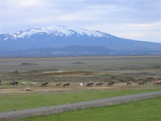 Islandshästar framför Hekla