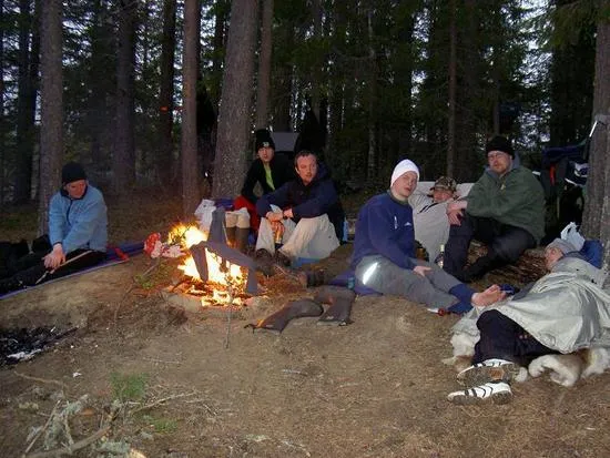 Ett gäng mätta och trötta killar på kanotingen 2005