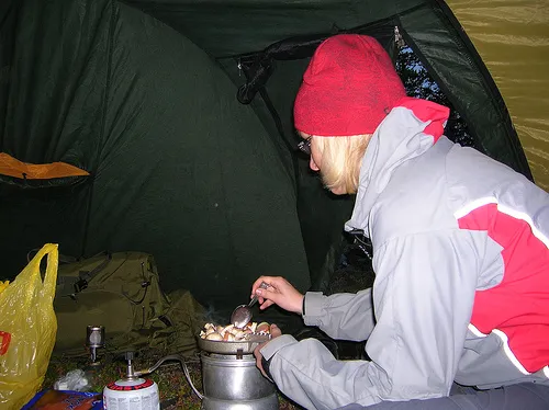 Jenni lagar mat, sent en kväll i Muddus i oktober 2005