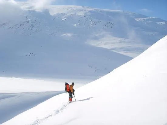 tagen på hemmarschen från ett toppförsök på sytertoppen. Tyvärr blev snön för instabil 75m (!) från toppen så vi var tvungna att vända efter 4 timmars klättring. ( vi tog inte leden utan klättrade på sidan som vätter ut mot syterstugan)