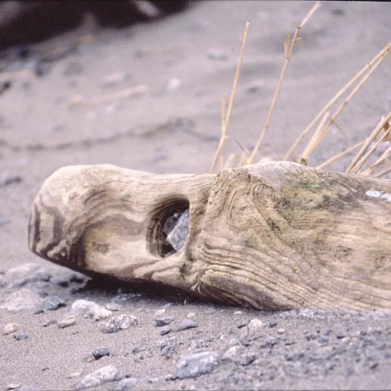En vackert formad drivvedsbit på stranden.