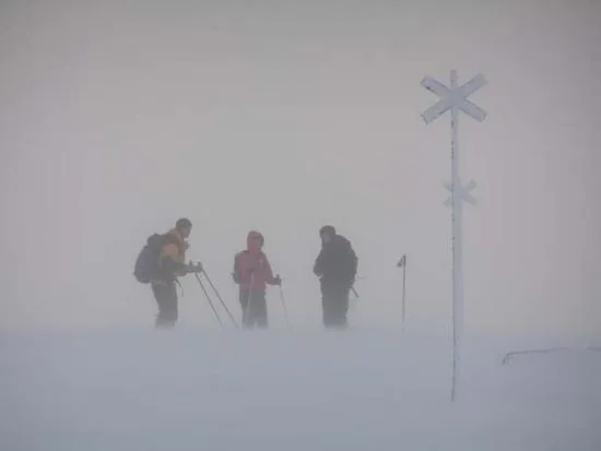 Grövelsjöfjällen, trettonhelgen, 2007. Solsken och lugnt i dalen men snöstorm på fjället!