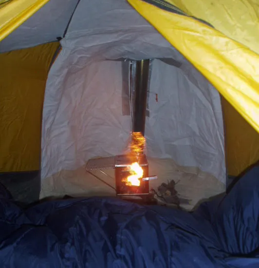 När ute temperaturen visar -38 då är inte alls fel att ha lite kamin inne i en tält. Man måste var extrem försiktigt att elda men allt värme är så välkommen när det är riktigt kall.