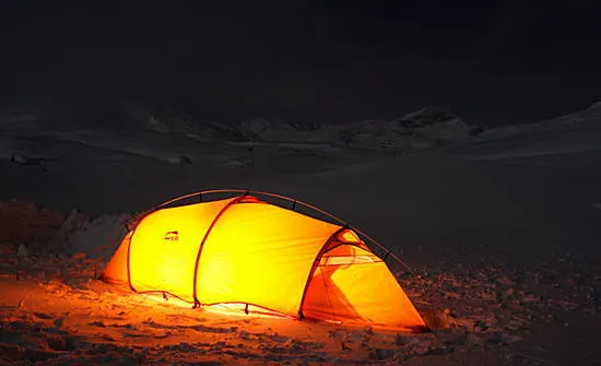 Det blev nästan fööööör starkt ljus från tältet imho. Vad är ljuskällan? Fjällen i bakgrunden är sköna däremot!