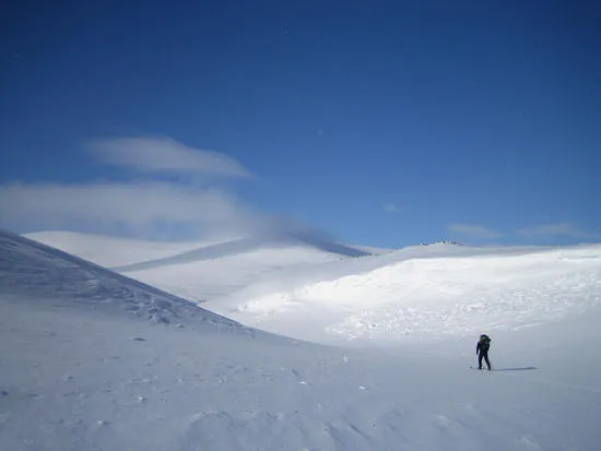 Instämmer. Det kanske inte är de mest dramatiska fjällformationerna, men vackra så det räcker. den ensamme skidåkaren är bra placerad också tycker jag.