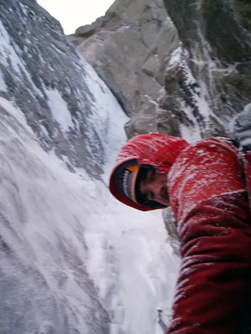 Jonas på førsta stand. Vi trodde vi gjorde en førsta bestigning men men när vi komm på toppen så såg vi den..en rappelslinga, nej nej. Vi klättrade 4 replängder.