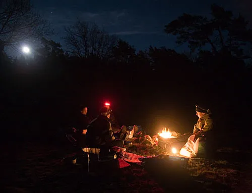 Mys vid lägerelden, fullmånen på väg upp. En fin tvådagars paddeltur i Listerby skärgåd.