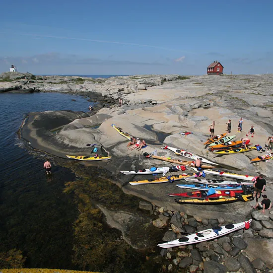 Kajakinvasion av Tistlarna, Göteborgs södra skärgård. 20-talet kajaker tog sig till Tistlarna under Valöträffen 2006.