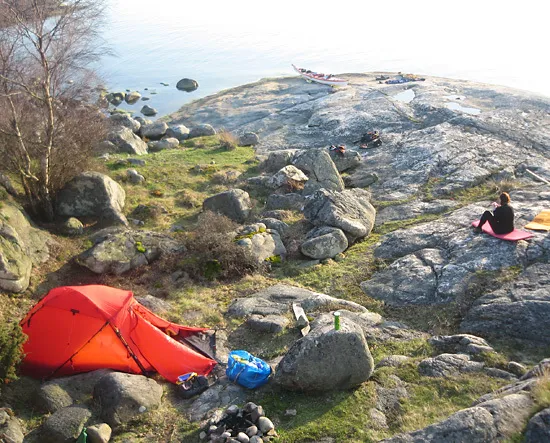 Kul att ni kunde klämma in tältet på en sån liten plätt bland stenar och trä'n!