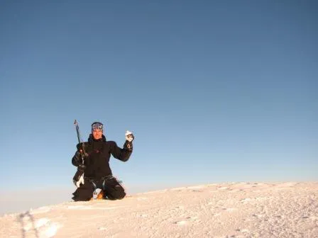 På toppen av Akka, lite knixit att fota sig själv... ett j..la springande!