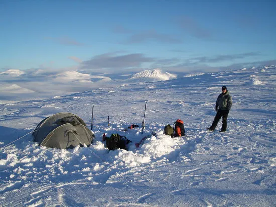 Jag och Markus Häggqvist vintertältade mellan Aigertstugan och Servestugan. När vi vaknade på morgonen var det så här vackert!