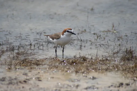 Snygg fågelbild! Det är en Red-capped Plover (en nära släkting till svartbent strandpipare) du lyckats fånga på denna vackra bild, med läckert solblänk i den våta stranden