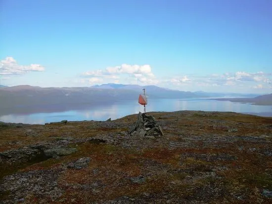 Sista kontrollen BAMM 2006. Skärmen satt ratt ovanför Björkliden och efter stämpling var det bara utför ner till målet. Torne Träsk i bakgrunden.