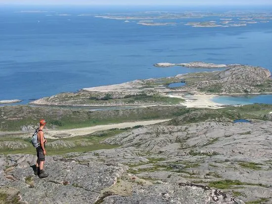På väg upp mot toppen på Rødøya, Helgelandskysten, Norge.