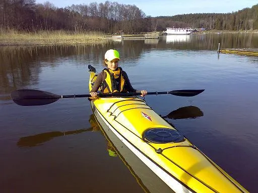 Caroline lär sig lågt stöd nere vid Flottvik en underbar vårkväll i April....(Premiärpaddling)