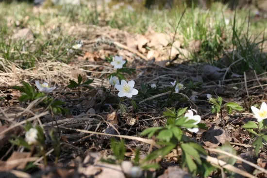 Jag, min hustru och bonusson är ute i skogen och njuter bl.a. av dessa vackra vitsippor