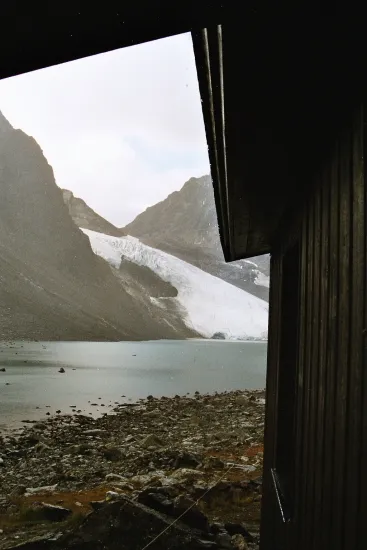 Gick till Tarfalastugan från Kebnekaise fjällstation (ganska snabbt) cirka 2 timmar och 20 minuter dit och 1 timme och 57 minuter åter till stationen. På tillbakavägen från Tarfala till Kebnekaise fjällstation regnade det hela tiden. Jag tror inte jag varit så våt in på bara kroppen någonsin i mitt liv. Hade bråttom till stationen då jag ville hinna med bastun som stängde kl 21:00. Jag småjoggade vissa sträckor på tillbakavägen. Bilden är tagen vid stugvärdens hus med Tarfalajaure och Kebnepakteglaciären i bakgrunden.