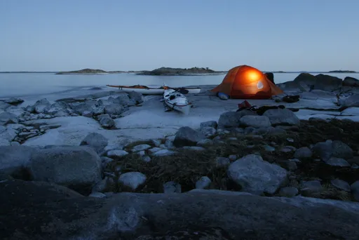 Mycket fin bild även denna. Jag gillar kombinationen av värmen från tältet och klipporna som ser frostiga ut. Fantastiska färger.