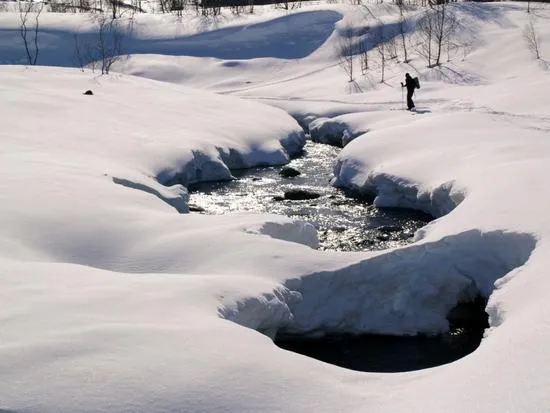 vacker bild! snön ser skön ut och skidåkaren liten.