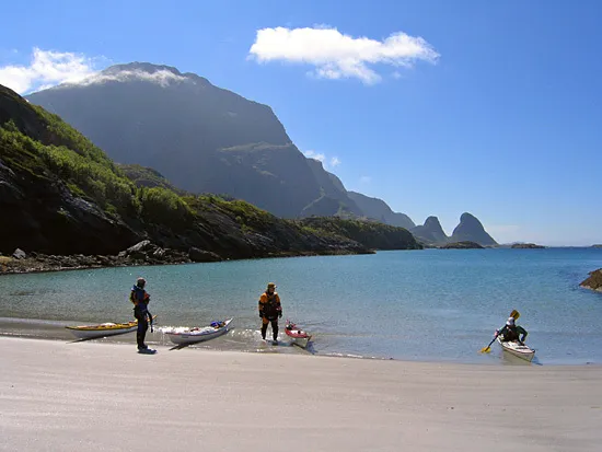 Svårt att tro tyckte vi när vi landade på denna stranden för vårt första nattläger. Strax söder om polcirkeln.